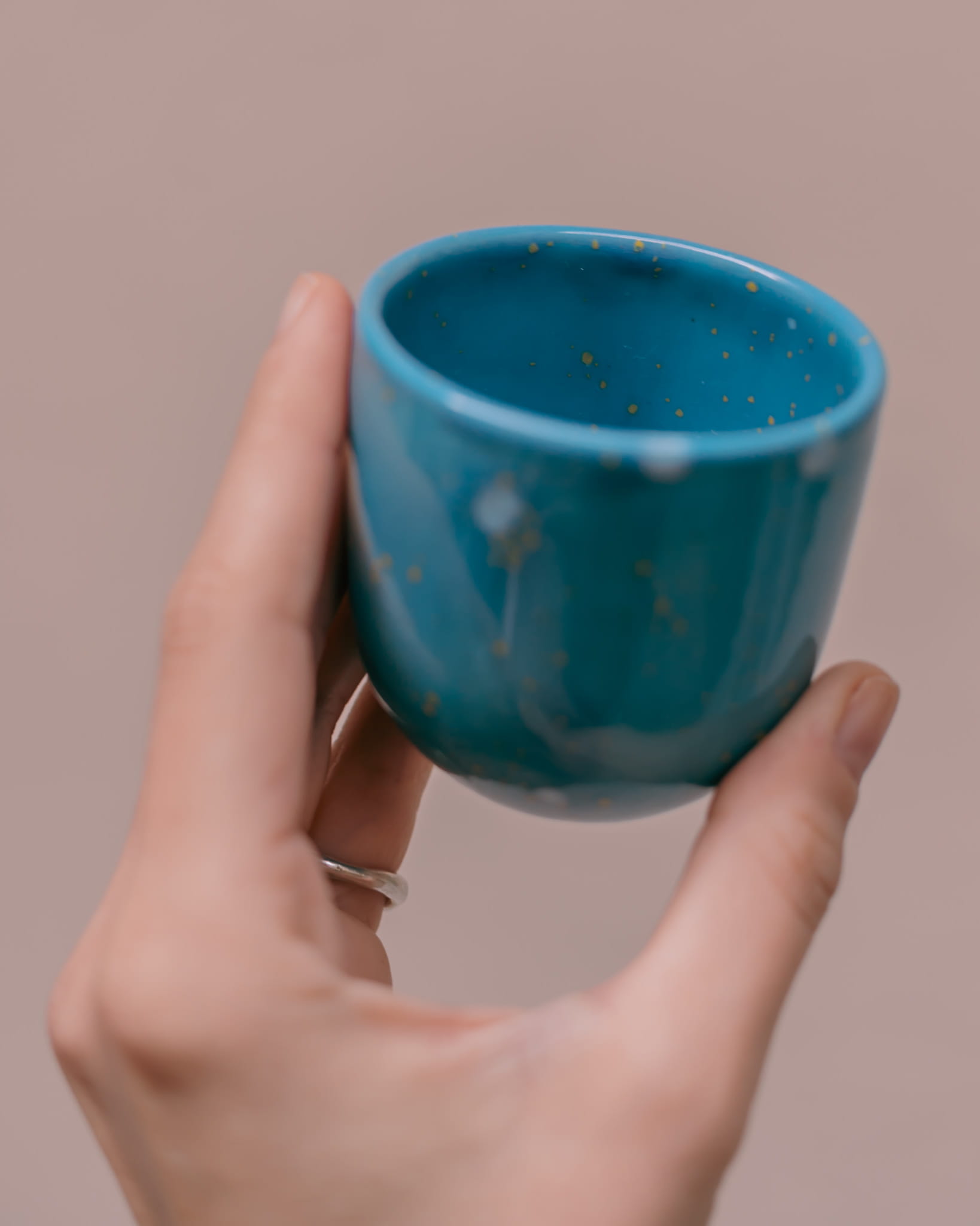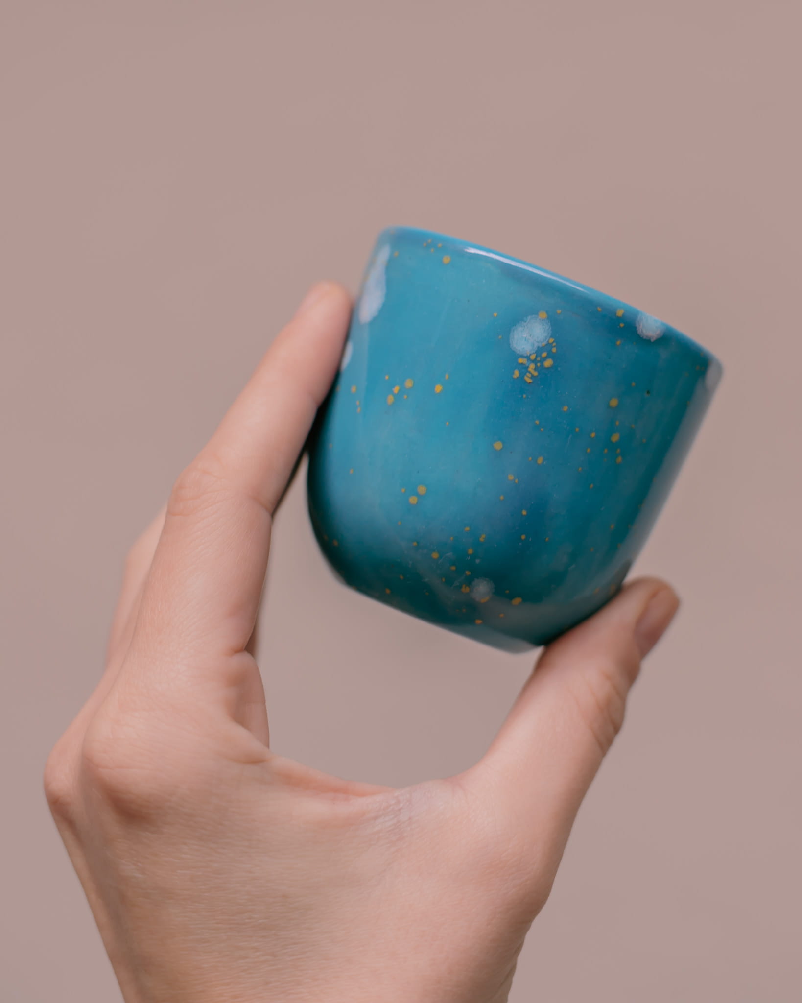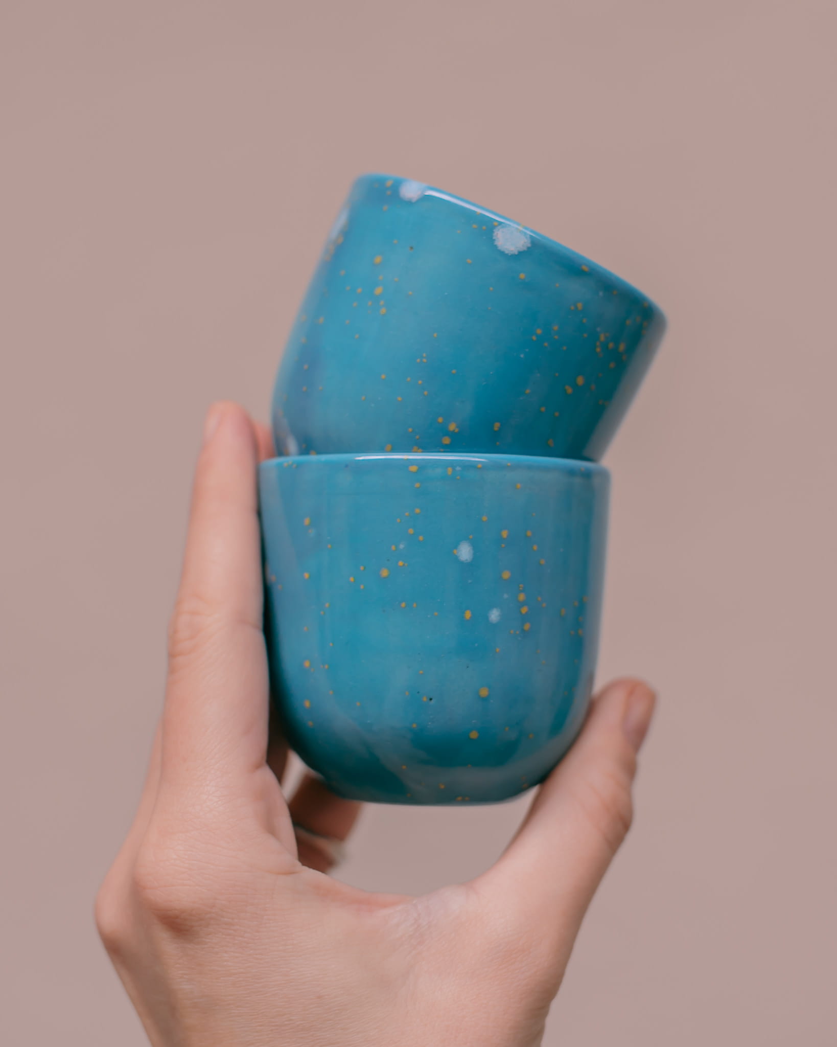 Ręcznie wykonane i szkliwione, dwie niebieskie czarki do espresso. Idealne na dzień dobry!