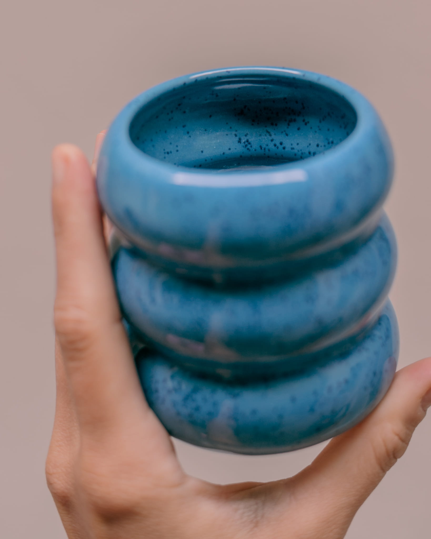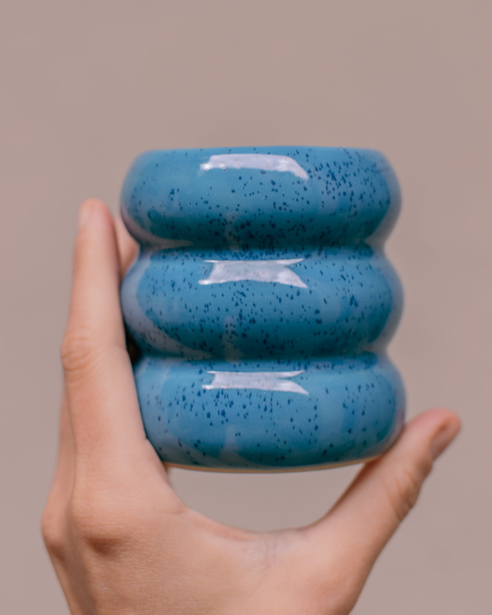 Ręcznie wykonany i szkliwiony kubek brzuszek, w kolorze nieba.
