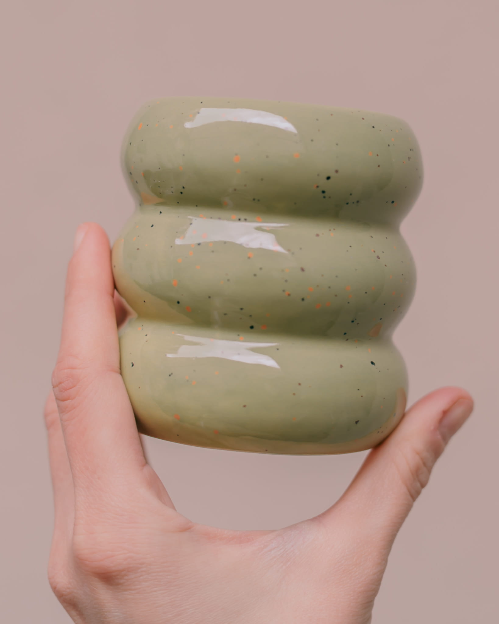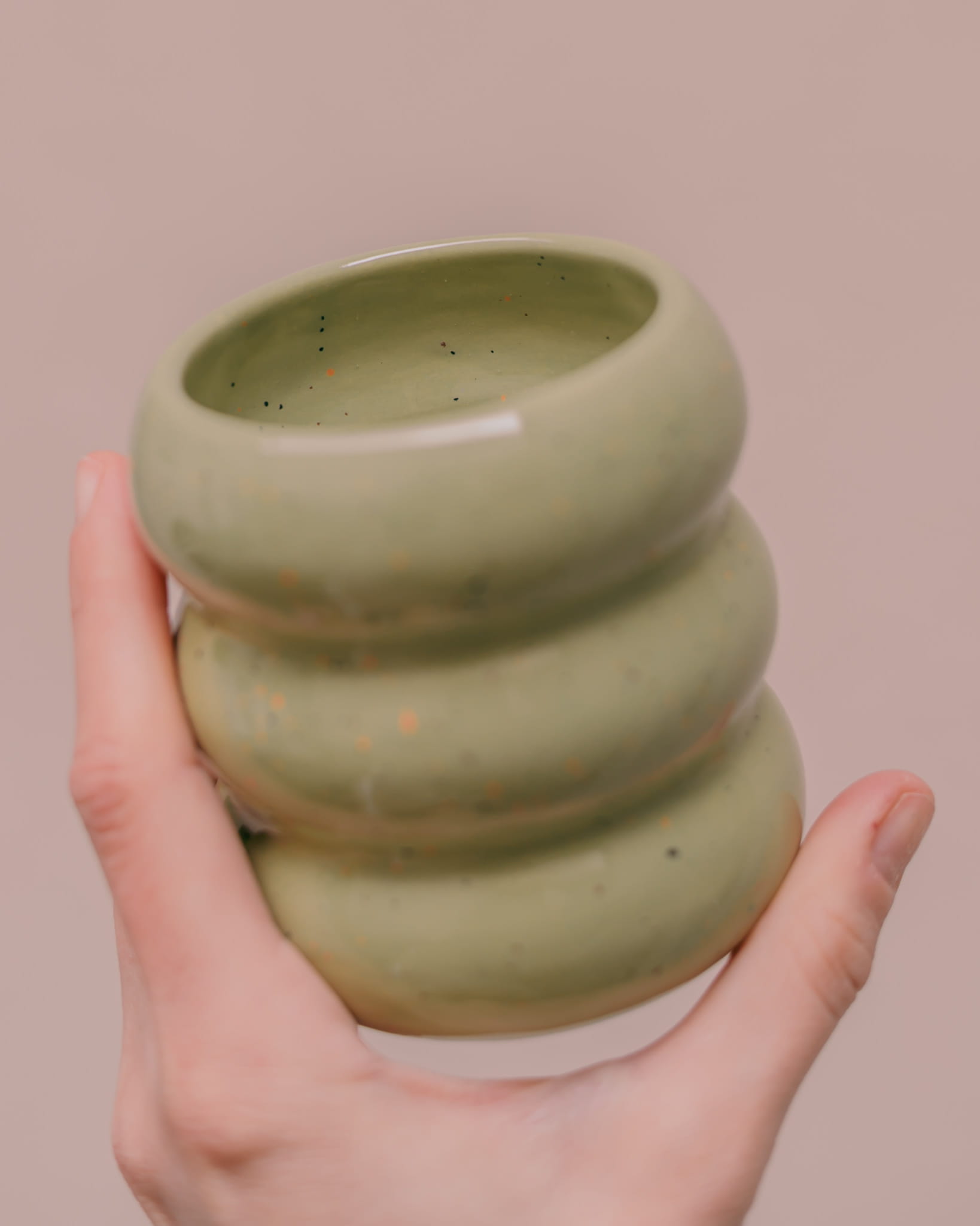 Ręcznie wykonany i szkliwiony kubek brzuszek, w kolorze szałwiowym.