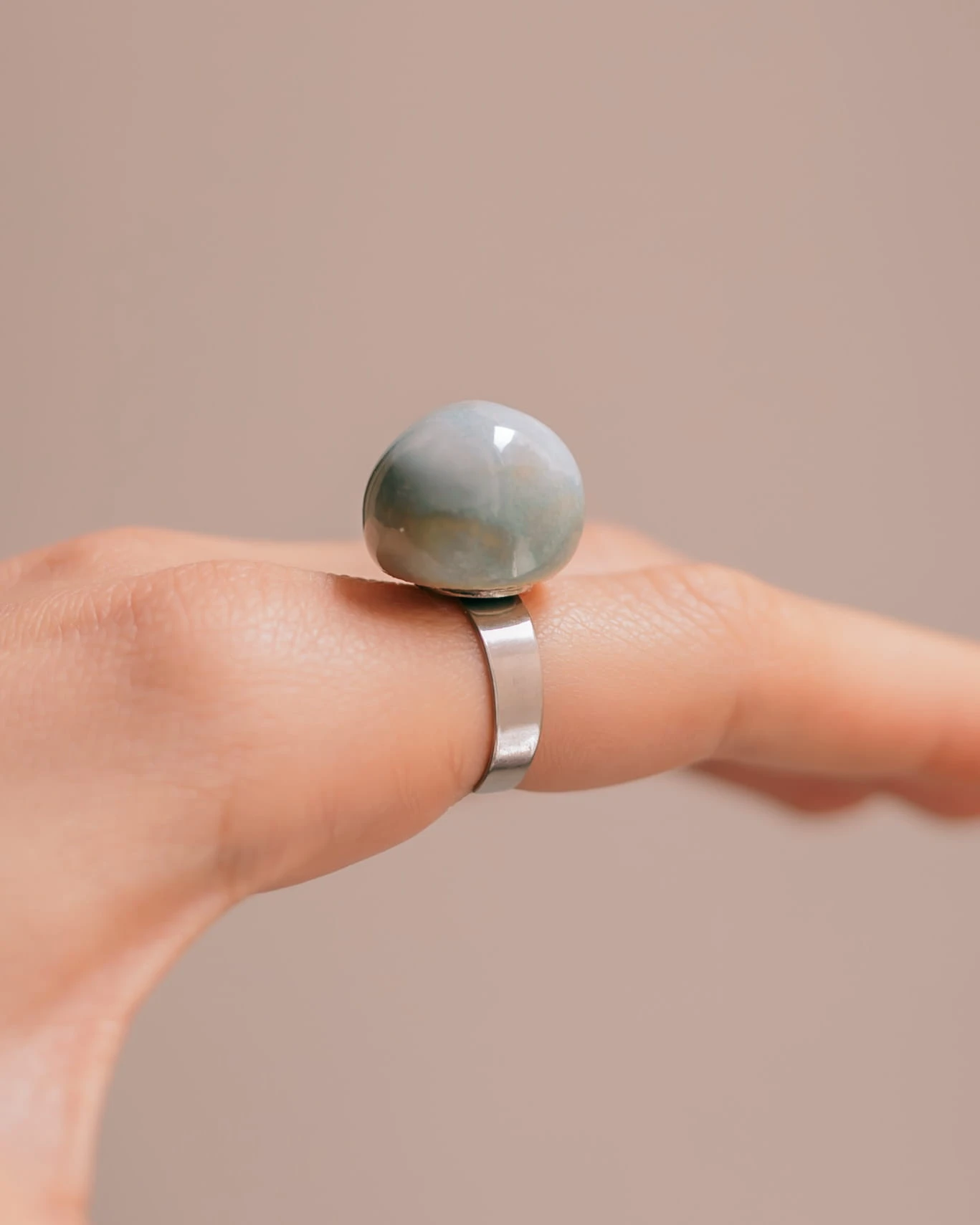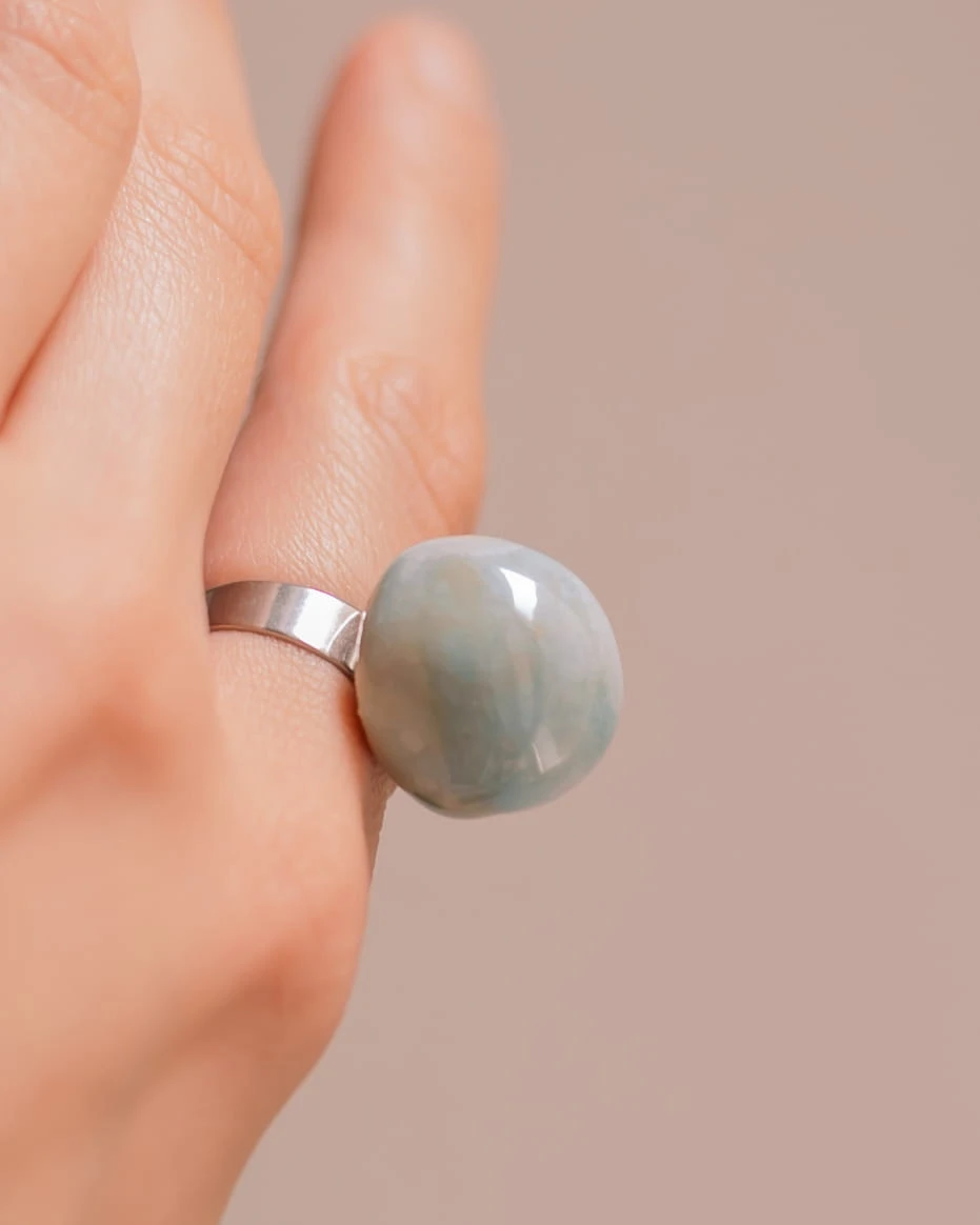 Ręcznie wykonany pierścionek ceramiczny na regulowanej szynie ze stali nierdzewnej. Każdy egzemplarz jest unikatowy, z delikatnymi różnicami w fakturze i kolorze, które podkreślają charakter handmade. Regulowana obrączka zapewnia wygodne dopasowanie i komfort noszenia na co dzień. <3