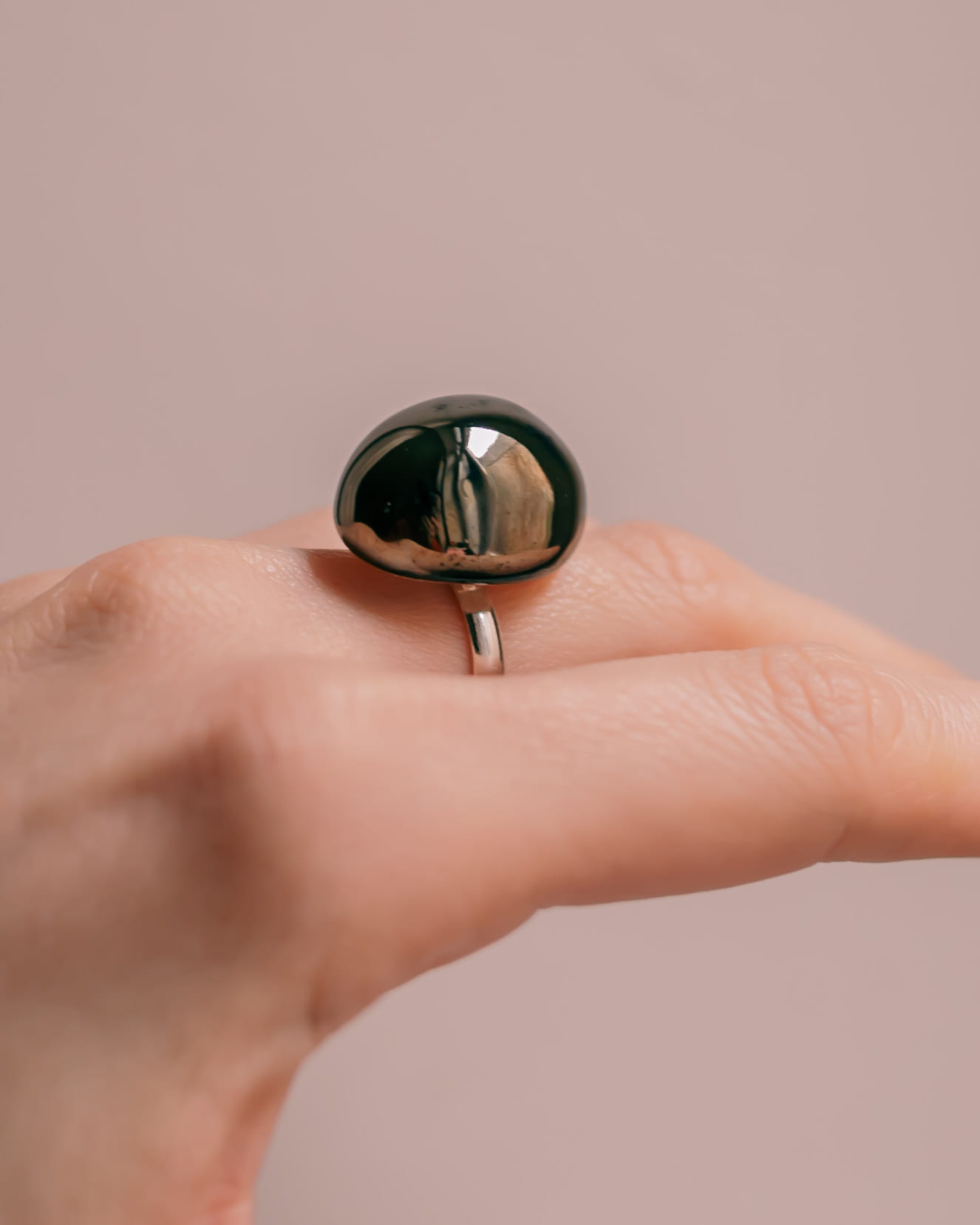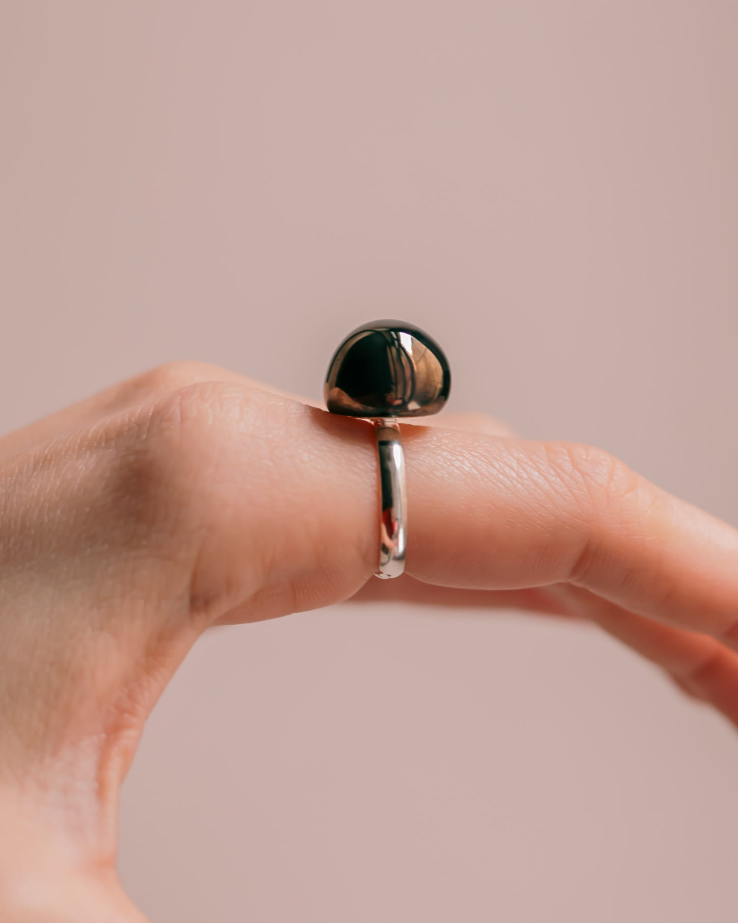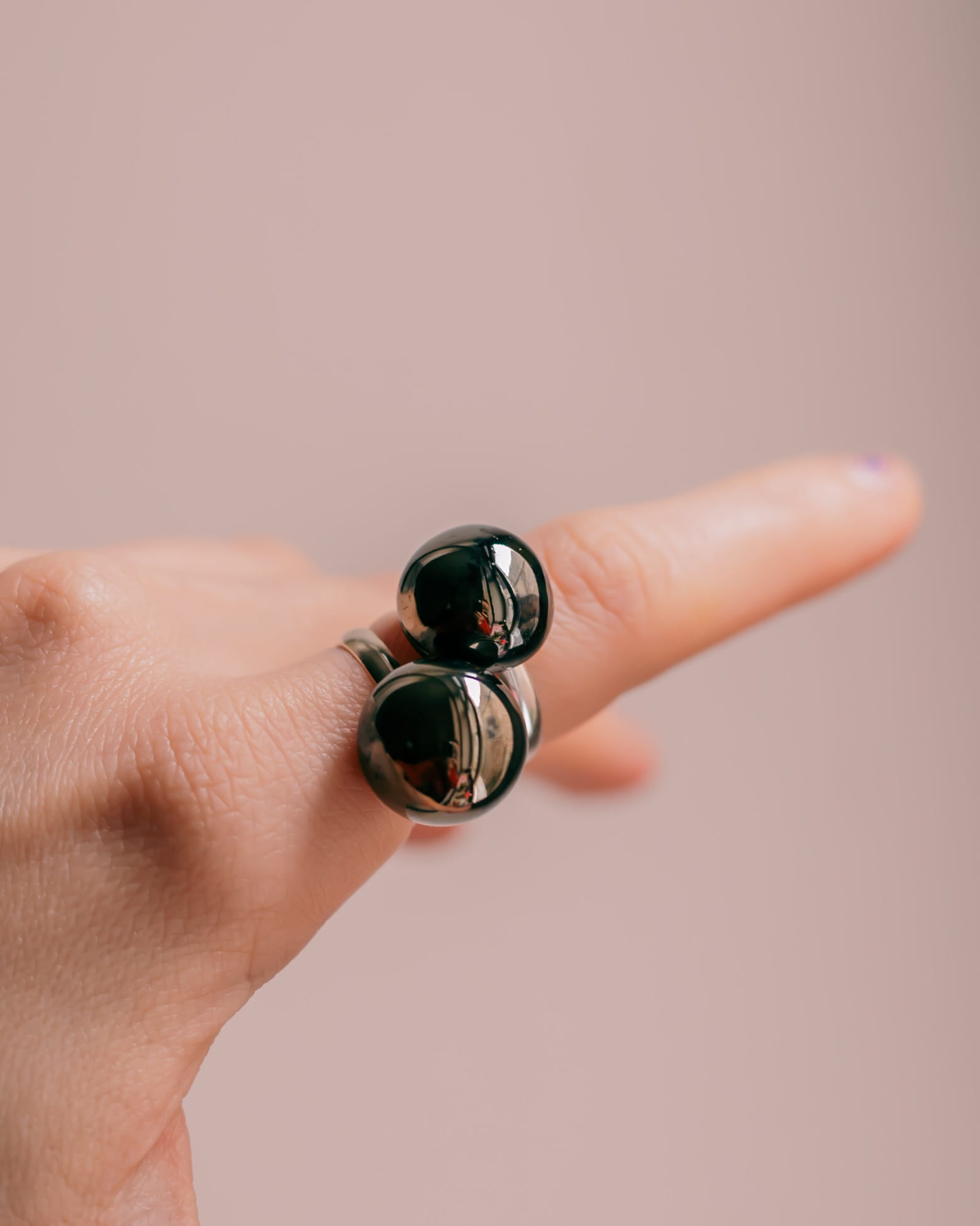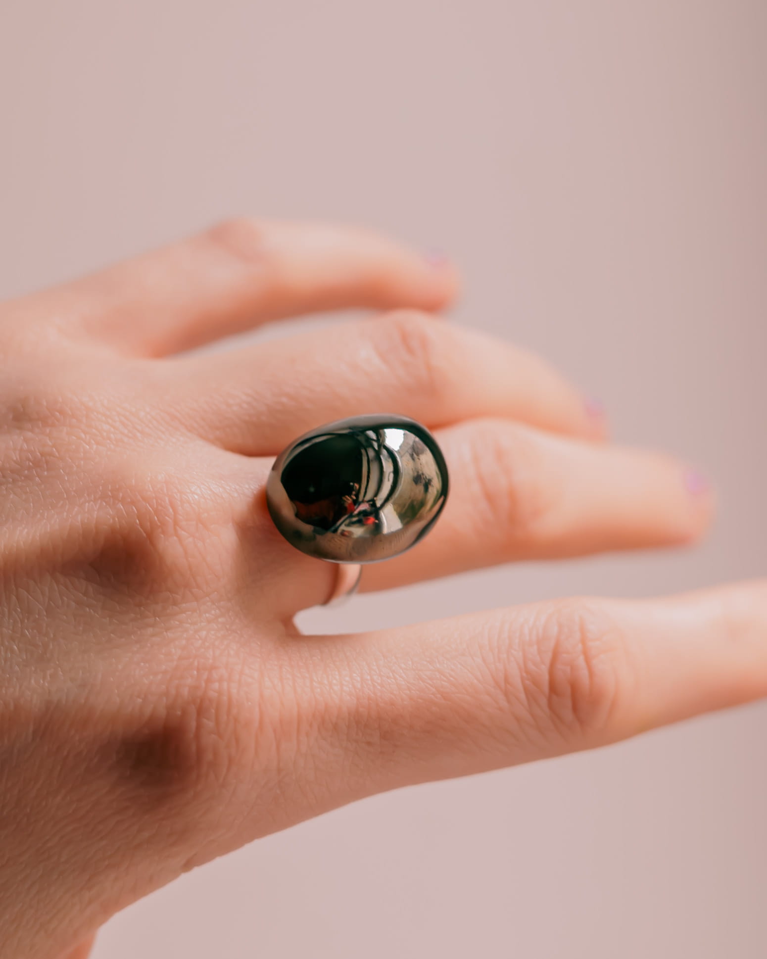 Ręcznie wykonany pierścionek ceramiczny na regulowanej szynie z mosiądzu. Każdy egzemplarz jest unikatowy, z delikatnymi różnicami w fakturze i kolorze, które podkreślają charakter handmade. Regulowana obrączka zapewnia wygodne dopasowanie i komfort noszenia na co dzień. <3