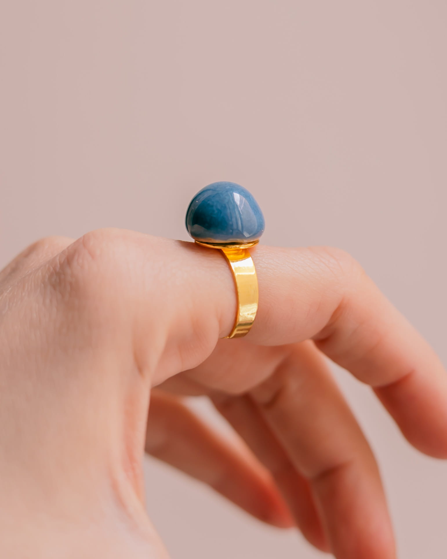 Ręcznie wykonany pierścionek ceramiczny na regulowanej szynie ze stali nierdzewnej. Każdy egzemplarz jest unikatowy, z delikatnymi różnicami w fakturze i kolorze, które podkreślają charakter handmade. Regulowana obrączka zapewnia wygodne dopasowanie i komfort noszenia na co dzień. <3