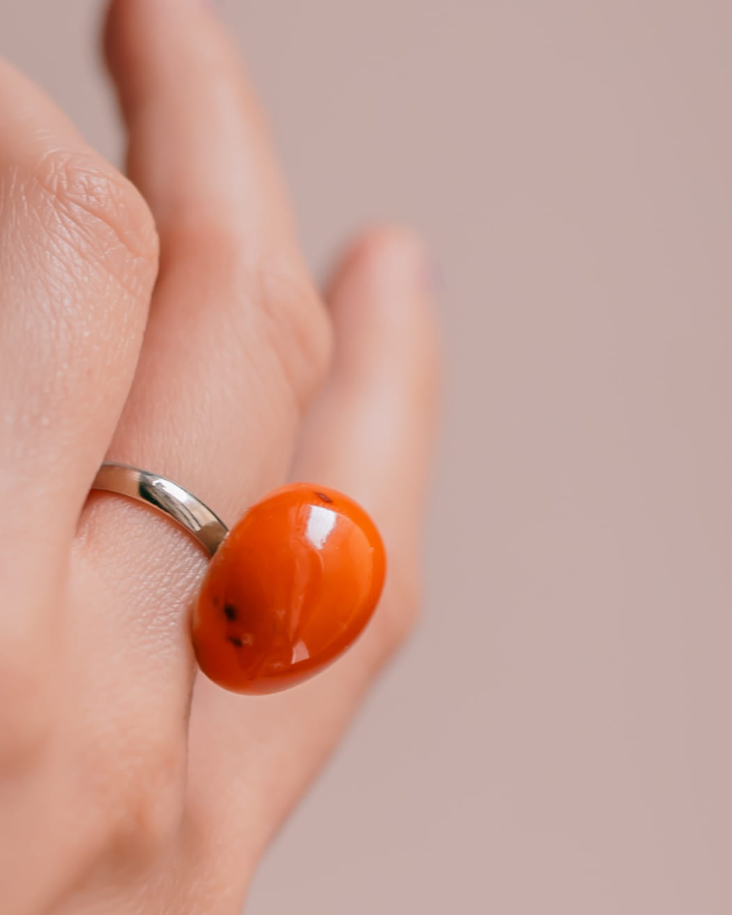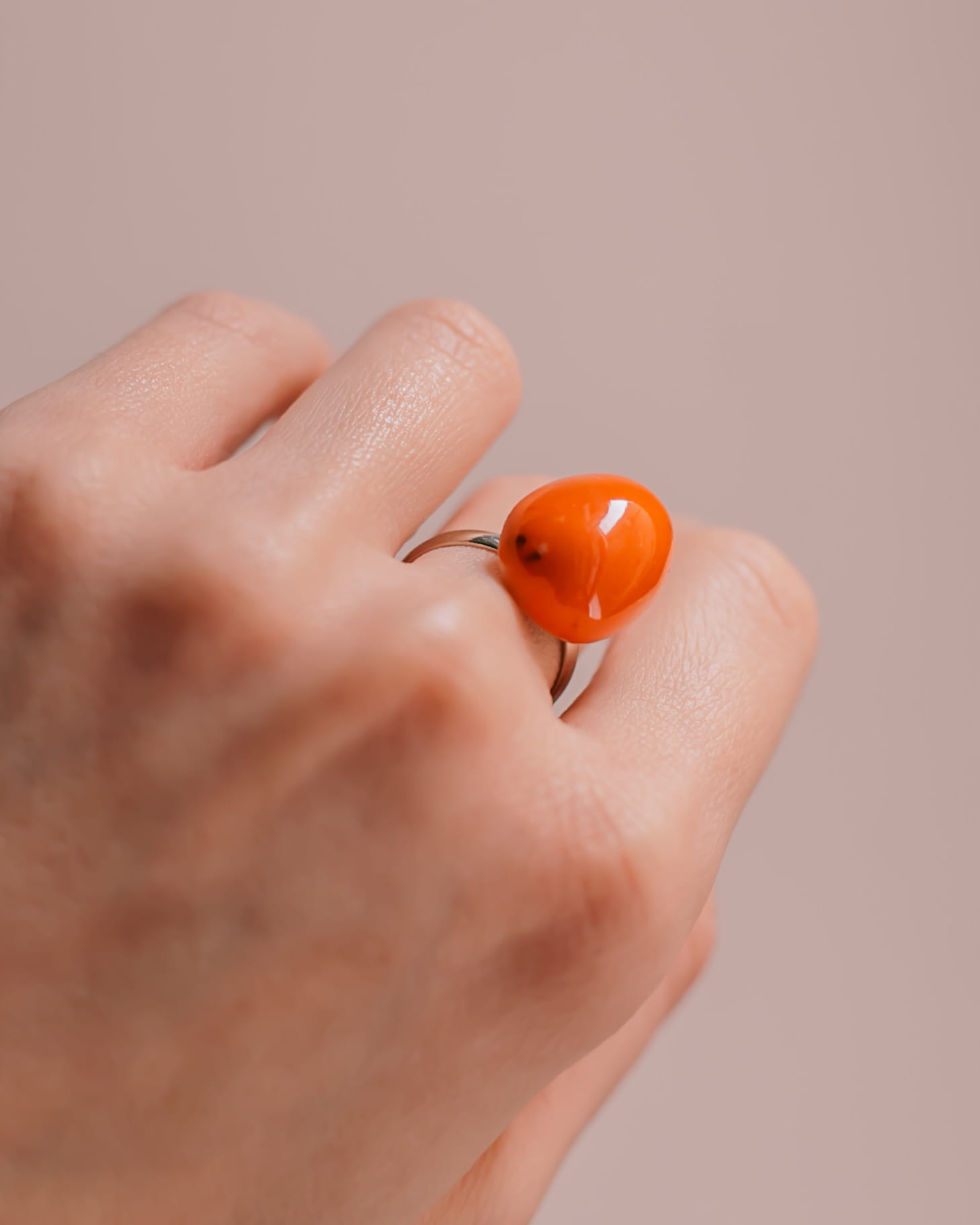 Ręcznie wykonany pierścionek ceramiczny na regulowanej szynie z mosiądzu. Każdy egzemplarz jest unikatowy, z delikatnymi różnicami w fakturze i kolorze, które podkreślają charakter handmade. Regulowana obrączka zapewnia wygodne dopasowanie i komfort noszenia na co dzień. <3