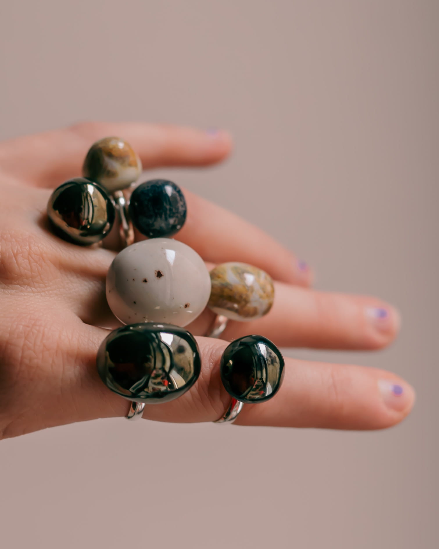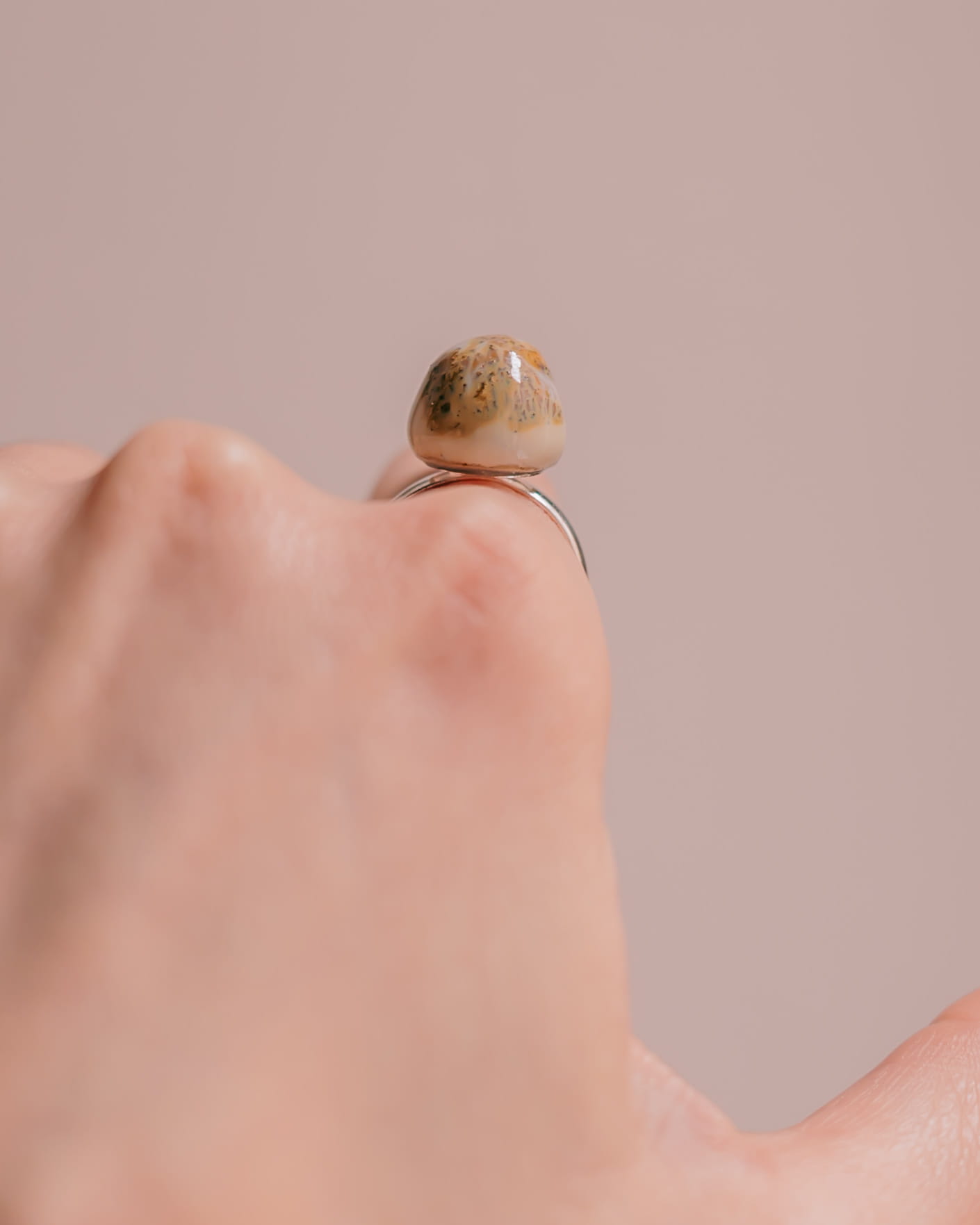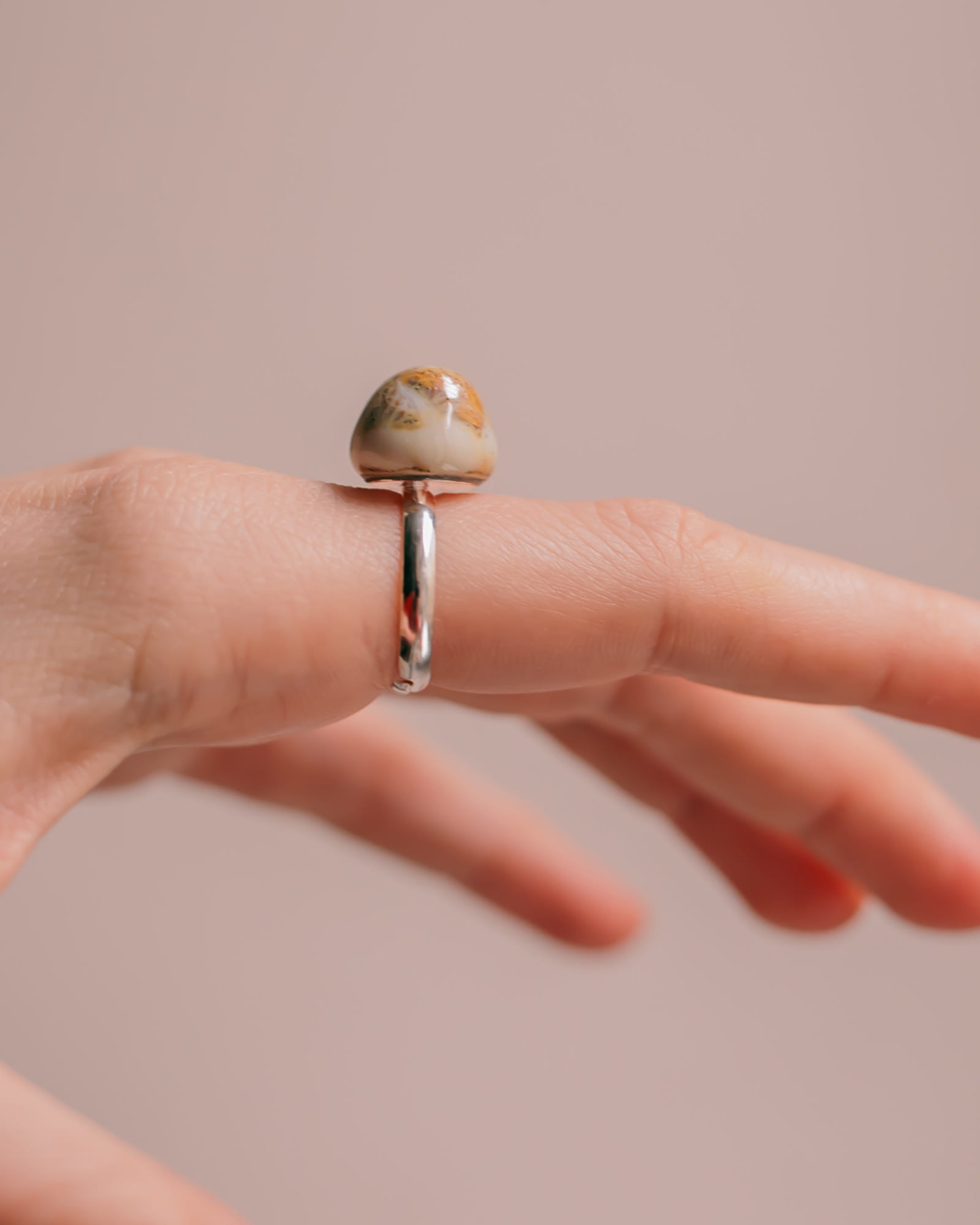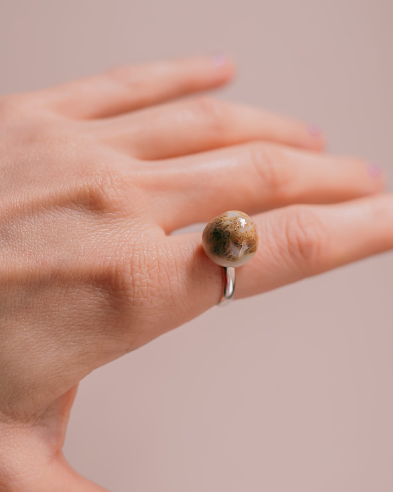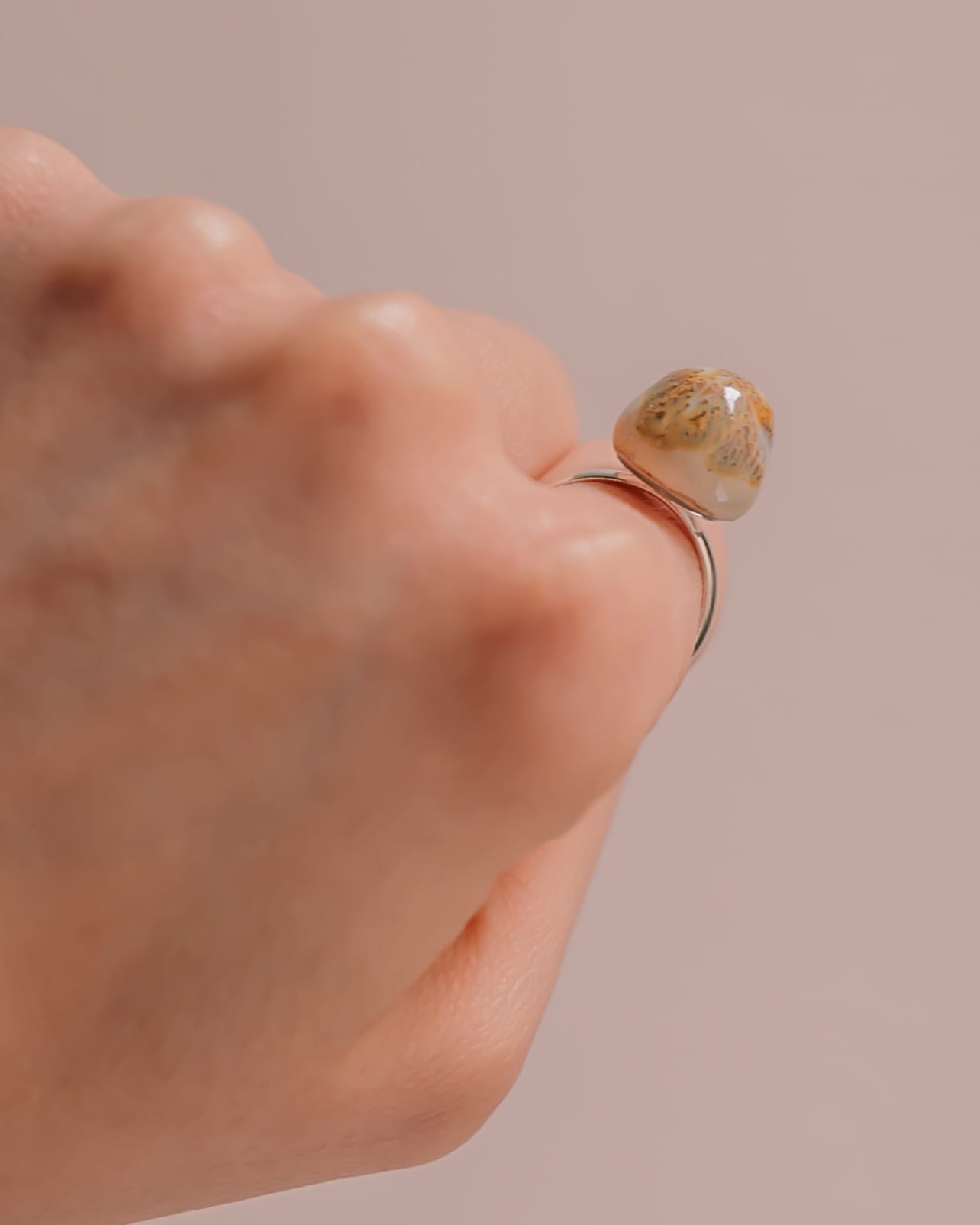 Ręcznie wykonany pierścionek ceramiczny na regulowanej szynie z mosiądzu. Każdy egzemplarz jest unikatowy, z delikatnymi różnicami w fakturze i kolorze, które podkreślają charakter handmade. Regulowana obrączka zapewnia wygodne dopasowanie i komfort noszenia na co dzień. <3