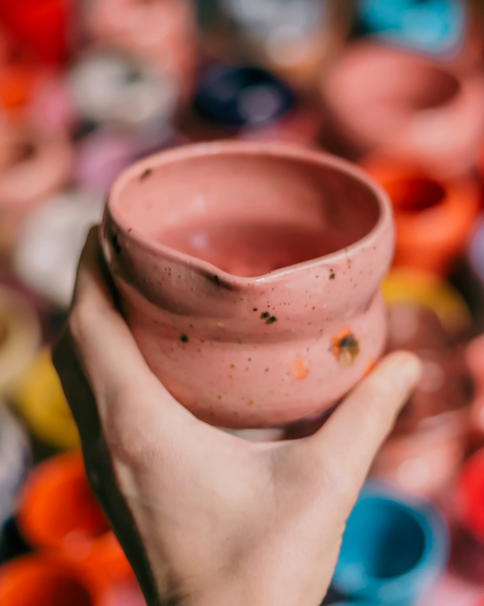 Śmietankowy matchawan o pojemności około 300 ml. Jest prototypem, więc nie ma idealnego dzióbka – trzeba lać z czułością. Może uronić kropelkę, ale po kilku przelaniach da się go już wyczuć <3