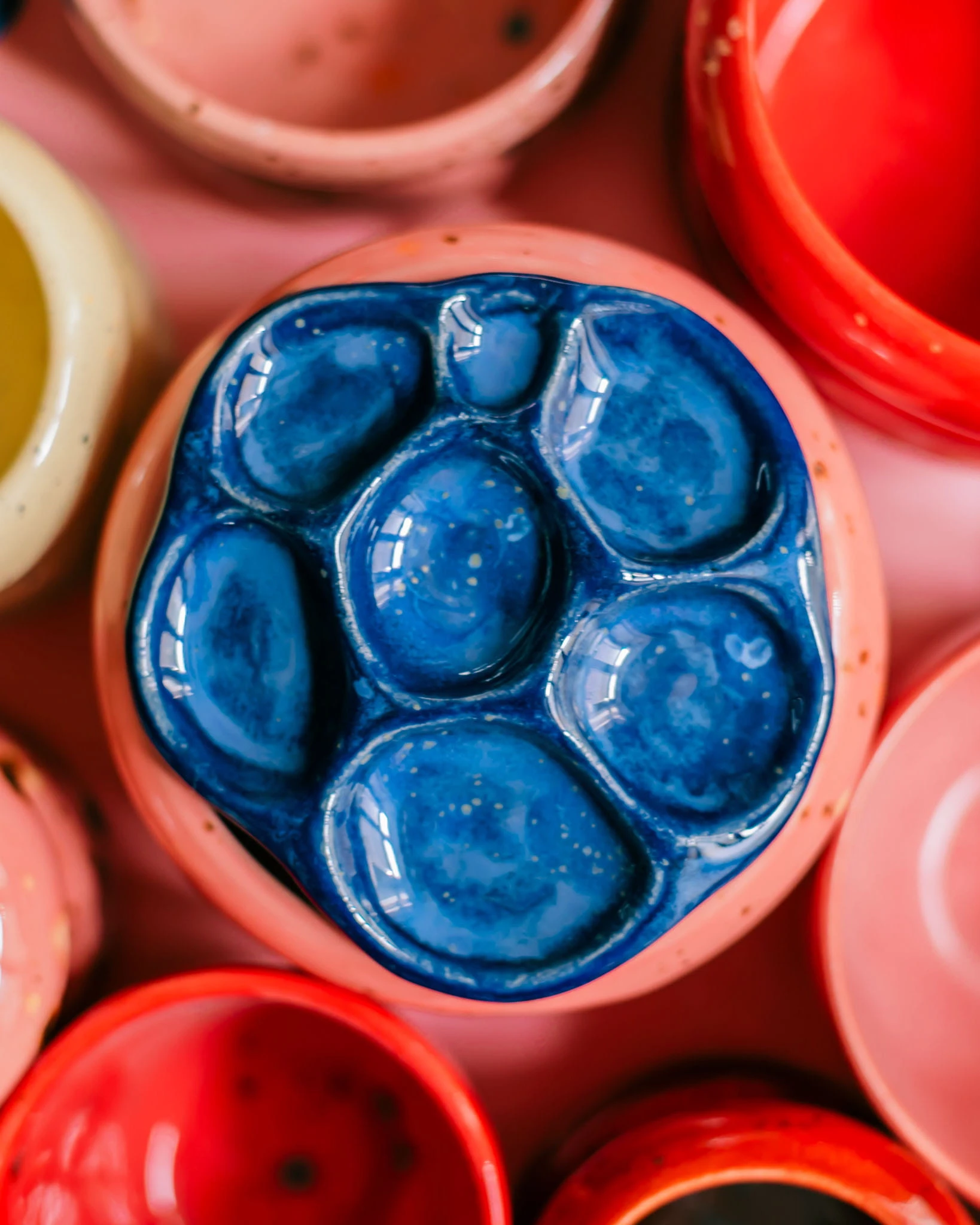 Ręcznie lepiony i szkliwiony talerzyk, idealny na biżuterię albo inne drobnostki.