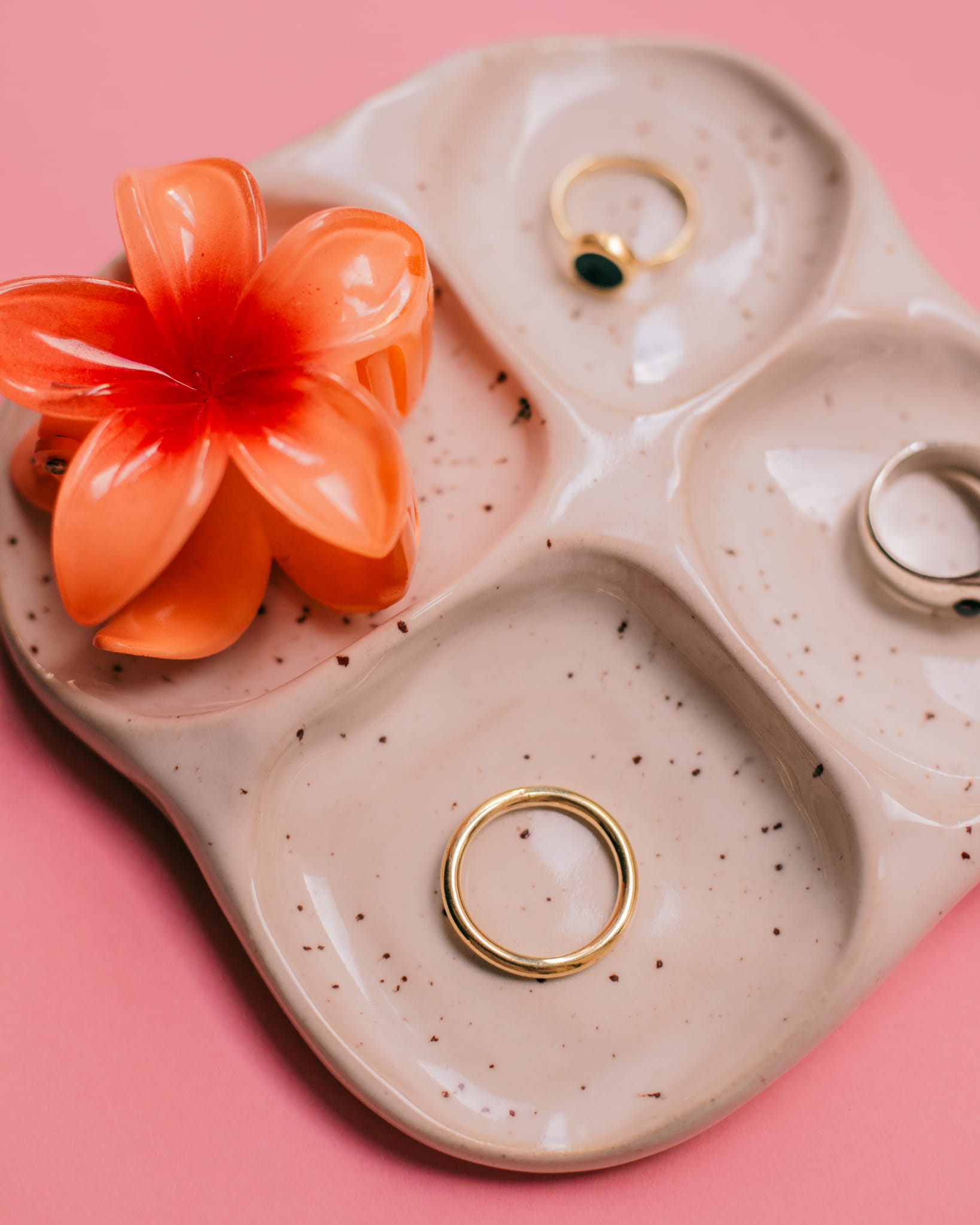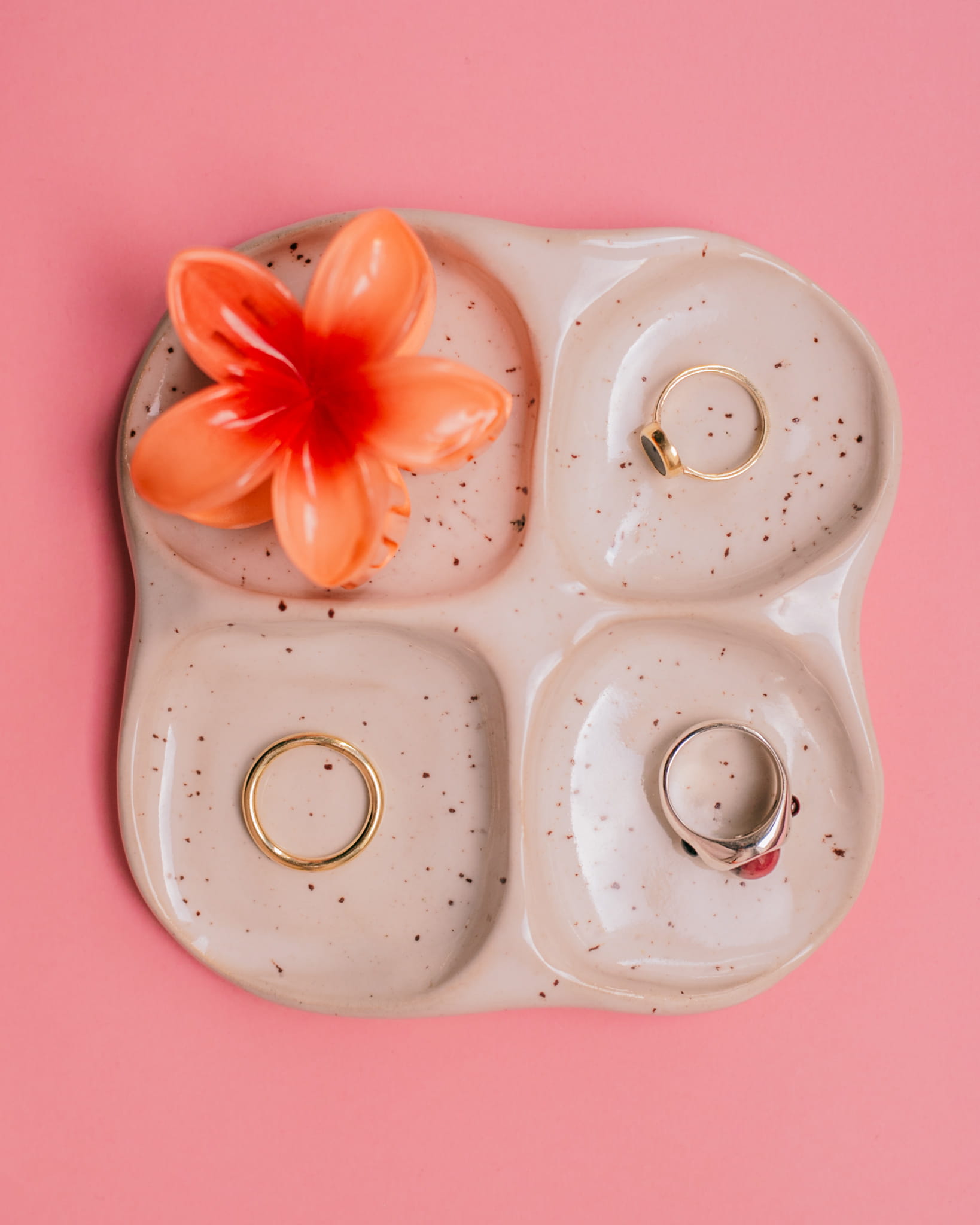 Ręcznie lepiony i szkliwiony talerzyk, idealny na biżuterię albo inne drobnostki.